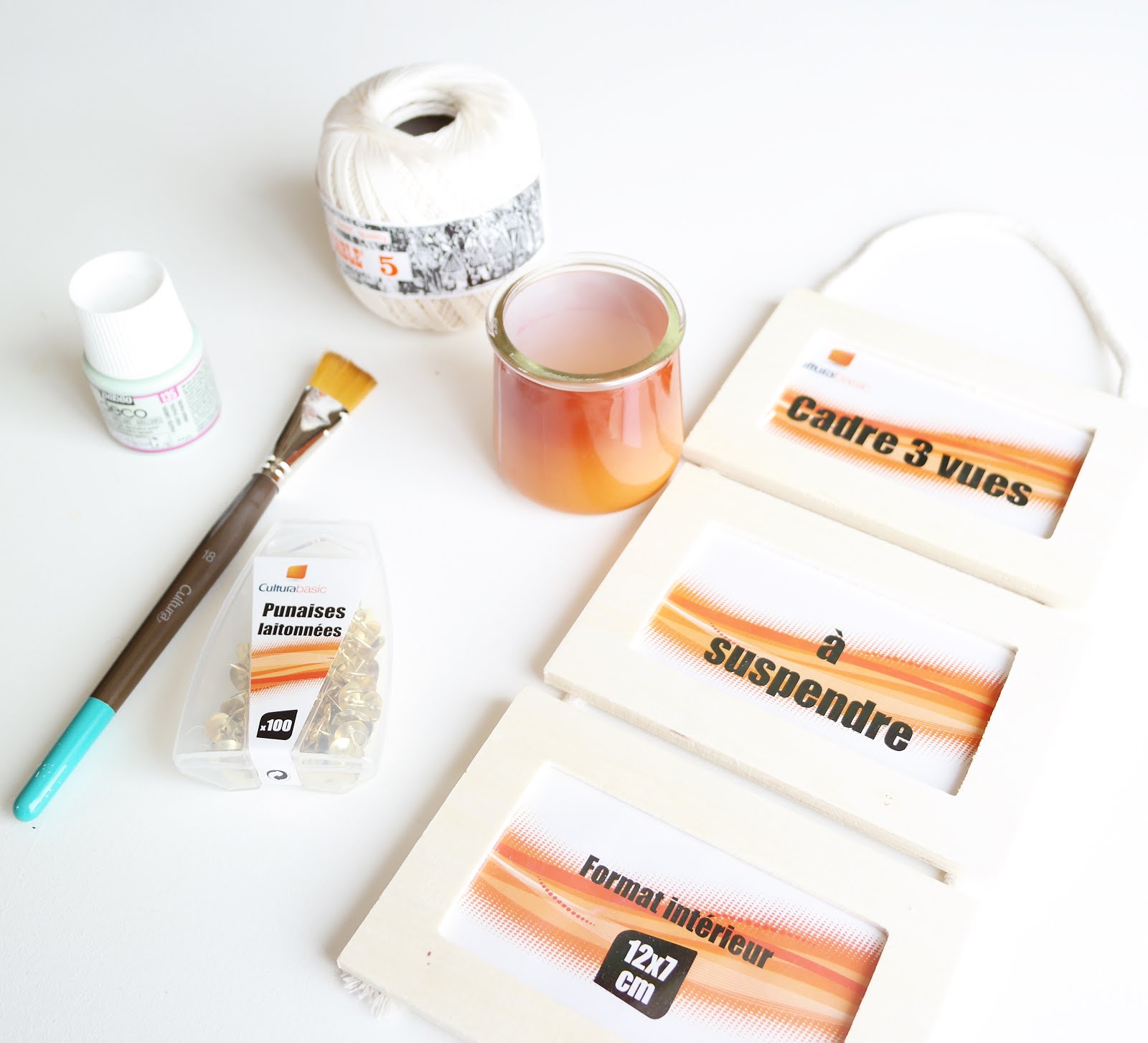 Après avoir enlever les fonds des trois cadres, vous pouvez peindre l’ensemble des cadres (sauf les cordes) dans la couleur de votre choix.