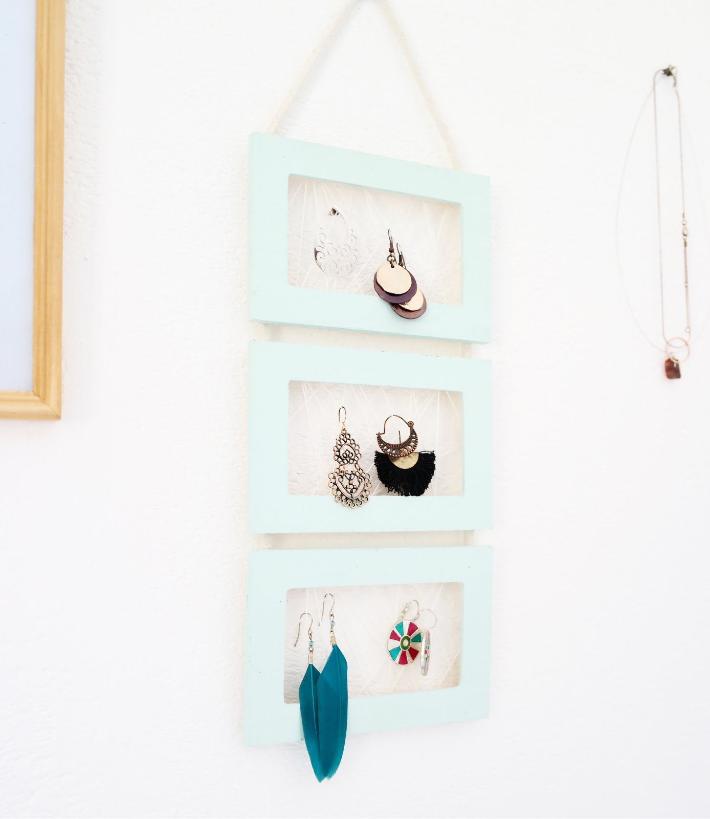 Ma sœur qui a une collection de bijoux bien plus importante que la mienne voulait un système pour pouvoir accrocher ses bijoux en les ayant à porter de main.